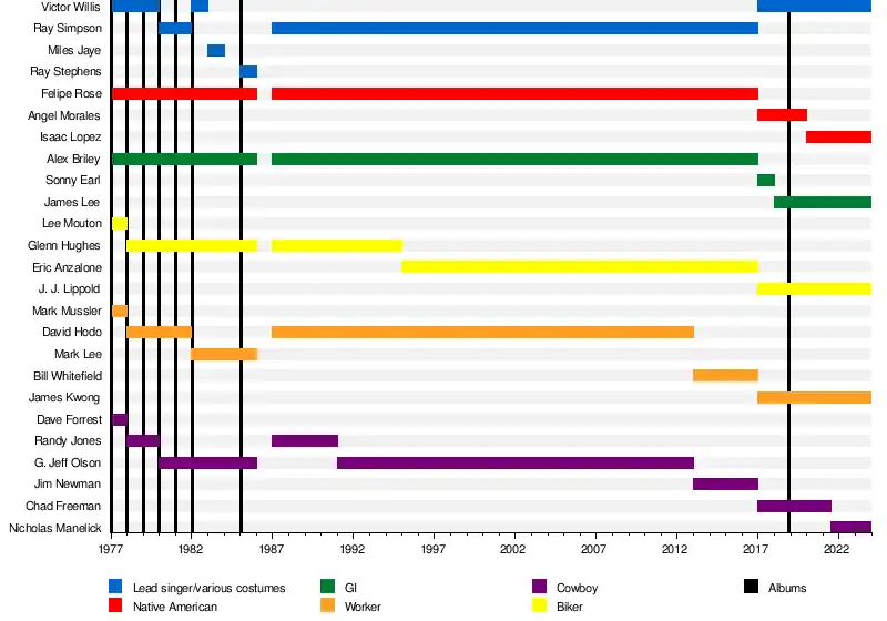 - Angel Morales filled in for Felipe Rose in 2008–2010, later replacing Felipe Rose.