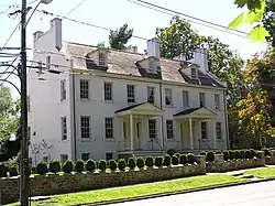 The Vincentown Historic District is a 92-acre (37 ha) historic district roughly bounded by Mill, Church, Pleasant, Main, and Race Streets, and Red Lion Road encompassing the community. It was added to the National Register of Historic Places on September 21, 1988 for its significance in architecture, commerce, industry, religion, and social history. The district includes 160 contributing buildings and 3 contributing sites.[14] The John Woolston House, a two and one-half story brick house with Federal style, was previously documented by the Historic American Buildings Survey in 1938.[15] The house at 57 Main Street is a three story Italianate style house featuring a cupola with a tree-type finial. It was built c. 1865 and is a key contributing property.[14]