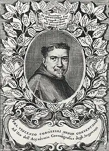 Vincenzo Maria Coronelli (August 16, 1650 – December 9, 1718) was an Italian Franciscan friar, cosmographer, cartographer, publisher, and encyclopedist known in particular for his atlases and globes. He spent most of his life in Venice.
