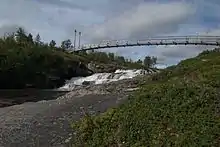 Nowadays, the reserve has an extensive trail system, totaling about 600 km.[S 10] The best known trail is the Kungsleden trail, but Drottningleden trail (south of Hemavan) and Vindelvaggileden trail (along the Vindel River valley) are also well known.[S 10] The trails are made of planks in the wetland area and numerous bridges.[S 11] In all, there are more than 40 bridges in the reserve, the most notable are the successive bridges that cross Lake Tärnasjön at the southern archipelago; sometimes called the Vindelfjällen Golden Gate Vindelfjällen.[S 11] Most trails are also snowmobile trails in winter, but there are also use specific paths.[21] To enable hikers and snowmobile drivers to spend the night in the reserve, many cottages were built in the reserve. There are three types of cottages: one is a paid stuga cottage to spend the night and often contains some equipment (emergency phone, kitchen, etc.), the koja is a free cabin to spend the night, but not equipped, and finally a rudimentary rastskydd is a small cottage to take a short break.[S 12] In 2012, the reserve has fifteen stuga and eight koja (for a total capacity of 250 people) as well as seven rastskydd.[S 10] The main stuga (sleeping up to 30 people each) are located along the Kungsleden trail, but there are also several other trails nearby. The koja are mostly located in coniferous forests, and are usually not connected to the network of trails.