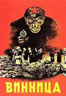 The Vinnytsia massacre was the mass execution of between 9,000 and 11,000 people in the Ukrainian town of Vinnytsia by the Soviet secret police NKVD during the Great Purge in 1937–1938, which Nazi Germany discovered during its occupation of Ukraine in 1943.[3] The investigation of the site first conducted by the international Katyn Commission coincided with the discovery of a similar mass murder site of Polish prisoners of war in Katyn. Among the 679 dead identified by the Germans in 1943, there were also a certain number of Russians and 28 Poles (according to the latest data, the number of Poles killed by the NKVD in the city could amount to over 3,000). Nazi propaganda invoked mention of the massacre to illustrate communist terror by the Soviet Union.