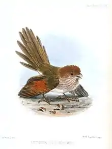- ↑ Robson, Craig (2007). "Family Paradoxornithidae (Parrotbill)". In del Hoyo, Josep; Elliott, Andrew; Christie, David (eds.). Handbook of the Birds of the World. Volume 12: Picathartes to Tits and Chickadees. Barcelona: Lynx Edicions. pp. 292–320. ISBN 978-84-96553-42-2.