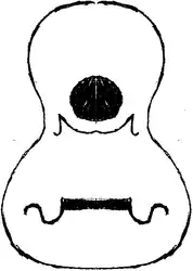 A plan of the body shape of a Viola de Queluz, with typical decorations of the soundboard and bridge design.