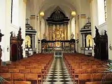 The Virga Jesse Basilica (Dutch: Virga Jessebasiliek) is a basilica, formerly known as the Onze-Lieve-Vrouwekerk, in Hasselt, Belgium. It dates back to the 14th century, approximately 1334.[1] The original chapel was replaced with the current church, which was completed in 1731. Prior to being elevated to the status of a basilica by Pope John Paul II in 1998, it was considered an auxiliary church of the church of St. Quentin, now St. Quentin Cathedral. The church and neighboring houses were heavily damaged by bombing during World War II in 1944. The rebuilt church, now the third church to be built in the same place, was dedicated to the then-bishop of Liège in 1951.[2]