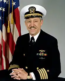 Virgil Lusk Hill Jr. (born April 2, 1938) is a retired rear admiral in the United States Navy. He was Superintendent of the United States Naval Academy in Annapolis, Maryland from August 18, 1988 to June 15, 1991. Hill attended Iowa State University for one year on a Navy Reserve Officer Training Corps scholarship prior to his four years at the United States Naval Academy, where he graduated with distinction in 1961, receiving his diploma from President John F. Kennedy. There he was a candidate for a Rhodes scholarship. Following graduation he went directly into the Nuclear Submarine Service. After retiring from the U.S. Navy in 1993, he was president of Valley Forge Military Academy and College in Wayne, Pennsylvania, before retiring seven years later. He was then asked to teach Leadership and Ethics in the Business School at Villanova University, where he taught for two years.[1]