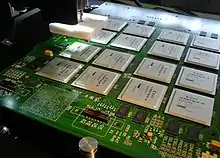 Virtex is the flagship family of FPGA products currently developed by AMD, originally Xilinx before being acquired by the former.[1] Other current product lines include Kintex (mid-range) and Artix (low-cost), each including configurations and models optimized for different applications.[2] In addition, AMD offers the Spartan low-cost series, which continues to be updated and is nearing production utilizing the same underlying architecture and process node as the larger 7-series devices.[3]