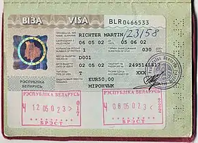- ↑ "Plans to develop digital visas, travel authorization system in Belarus". eng.belta.by. 6 July 2018. Retrieved 17 June 2019.
