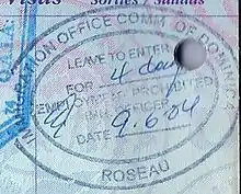 - ↑ "Do I Need a Visa to Enter into Dominica?". Government of the Commonwealth of Dominica. Archived from the original on 2020-02-02. Retrieved 2020-02-02.