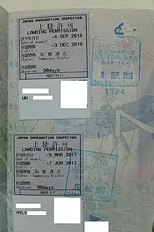 - 1 2 外務省外国人課 (25 October 2004). "韓国・中国等に対する査証手続緩和措置の現状" (PDF). Cabinet Office, Government of Japan (in Japanese). Retrieved 8 December 2019.
