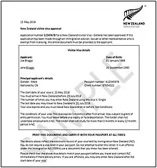 - 1 2 "What is an eVisa?". immigration.govt.nz. Immigration New Zealand. Archived from the original on 27 January 2018. Retrieved 21 May 2020.