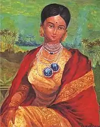Visakha Wijeyerate was famous for one of the finest reproductions of the 1815 portrait of Rangamma, main consort of Kandy’s last king, Sri Wickreme Rajasinghe. Her other notable reproductions were of Fragonard’s “Inspiration”; Carlo Dolci’s “St. Cecilia”and Da Vinci’s “Mona Lisa". In 1981, at her peak, she was commissioned to do the portrait of President J.R Jayawardene. Her most notable international exposure was in 1987 when she exhibited, along with 56 Commonwealth artists, at The Bhownagree Gallery of the Commonwealth Institute in Kensington, London.