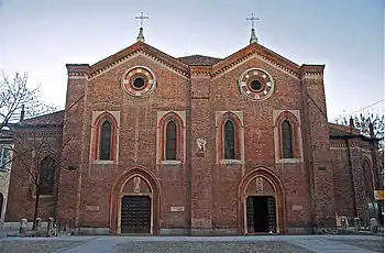 In 1428 Filippo Maria married Mary of Savoy, but they had no sons. In 1425 his mistress Agnese Del Maino gave birth to an illegitimate daughter, Bianca Maria. Considered by his father his only heir, she grew up with her mother in the Abbiategrasso and Cusago castles.[86][87] In 1432 Bianca Maria was betrothed to Francesco Sforza, a condottiero of Filippo Maria. In 1441 she married him, granting him the succession to the Duchy of Milan. A sign of their marriage is visible today in the twin churches of Santa Maria Incoronata in Milan.[88][89]