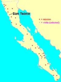 Location of the Visita de San Telmo among the Spanish missions in Baja California