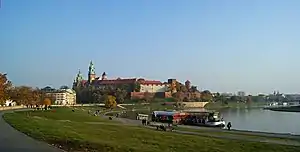 The boulevards around the river channel of the Vistula and the Rudawa are part of an area of parkland, being a popular recreational area for Cracovians and tourists alike.[4] The boulevards are pedestrianised, with bicycle routes.[5]