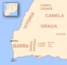 Posh residential district Vitória centers on Sete Setembro Avenue, lined with giant mango trees and luxury condos overlooking the bay. Mansions-turned-museums on the avenue include Museu de Arte de Bahia, with its regional paintings and sculpture, and Carlos Costa Pinto Museum, which exhibits jewelry, furnishings, and art from colonial times. Concerts in the courtyard are among the draws at the Goethe Institute. It is located in the southern zone of Salvador, Bahia, Brazil.[1]
