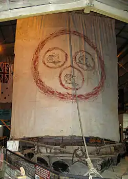 The second raft, La Balsa (Spanish for The Raft), featured a balsa wood and hemp rope built structure, to which was attached two hardwood masts, to support a square canvas sail.[3] In contrast to the oar used for steering on Kon-Tiki, the La Balsa featured a hardwood moving keelboard (known as Guaras in Ecuador) which allowed it to be actively sailed toward favourable currents, rather than drifting.[3]