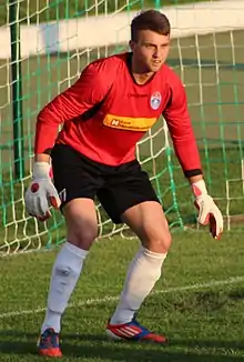 Vitaliy Oleksandrovych Myrnyi (Ukrainian: Віталій Олександрович Мирний; born 3 April 1992) is a Ukrainian professional footballer who plays as a goalkeeper.[1]