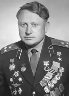 Vladimir Fyodorovich Konstantinov (Russian: Владимир Фёдорович Константинов; 22 February 1921 – 15 July 1979) was a Soviet bomber and ground attack pilot during World War II. Awarded the title Hero of the Soviet Union in 1944 for his sorties on a Po-2 night bomber, he went on to hold various posts in assault and fighter-bomber aviation regiments, and achieved the rank of colonel in 1969. His sister, Tamara Konstantinova, an Il-2 pilot during the war, was also awarded the title Hero of the Soviet Union.[1]