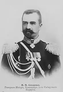 Vladimir Viktorovich Sakharov (Russian: Влади́мир Ви́кторович Са́харов; 20 May 1853 – 1920) was a Russian general of the cavalry who served in the Russian Imperial Army. In an army career lasting from 1869 to 1917, he served in the Russo-Turkish War of 1877-1878, the Russo-Japanese War, and World War I.