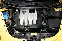 For the 2006 model, the exterior was slightly redesigned with more angular bumpers and wheel wells, and these models were fitted with the 2.5 L 5-cylinder engine with 150 hp (112 kW) which was also fitted on the Rabbit and Jetta, later becoming the sole engine option. The New Beetle would not be given the upgraded 2.5 L engine (engine code CBTA/CBUA) that 2008 and later Jettas and Rabbits received.