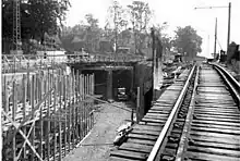 The connection of the eastern and western metro network in the early 1990s meant that the Røa Line was to be upgrades to metro standard. This meant that platforms were to be extended to 110 meters (360 ft) to allow six-car metro trains. In addition to a complete renovation of the tracks, this meant that the overhead wires were replaced with a third rail. The Kolsås Line would for the mean-time be retained with the old system. The upgraded Røa Line started using three-car trains, while two-car trains continued to run to Kolsås. Oslo Sporveier concluded that the tunnel did not make it worthwhile to expand the platforms. From 5 February 1995 the station was therefore only served by trains along the Kolsås Line.[2] The station was closed on 7 April 1997, when three-car trains started running on the Kolsås Line.[3]