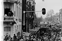 During the 1970s, squatting became increasingly prevalent in Amsterdam due to the lack of housing and the high number of decayed buildings in the city centre. Many of the squatters occupying land were young adults from the baby boom generation who had trouble finding homes. A previous riot in Amsterdam happened in 1966. Authorities did little to stop them before the events of 1980.[1] Many riots occurred between the squatters and the authorities (overall referred to as Krakersrellen), the biggest being the Nieuwmarkt Riots in 1975.