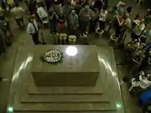 At the eastern corner of the monument, on the same level as its entrance, is the foundation stone.