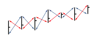 A vortex pattern may be observed in any market by connecting the lows of that market's price bars with the consecutive bars’ highs, and then price bar highs with consecutive lows. The greater the distance between the low of a price bar and the subsequent bar's high, the greater the upward or positive Vortex movement (VM+). Similarly, the greater the distance between a price bar's high and the subsequent bar's low, the greater the downward or negative Vortex movement (VM-).