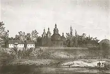 Nothing is known about the youth of Vaišvilkas as he entered historical sources only in 1254 when he made a treaty, in the name of his father King Mindaugas, with Daniel of Halych-Volhynia. In the treaty, Halych-Volhynia transfers Black Ruthenia with center in Navahrudak to Lithuania. To solidify the treaty, Daniel's son Shvarn was married to Vaišvilkas' sister.[3] Vaišvilkas was appointed as duke of some of these lands. After Vaišvilkas was baptized in a Greek Orthodox rite, he was drawn to religious life so much that he transferred his title and lands to Roman Danylovich, son of Daniel of Halych.[3] He founded a monastery traditionally identified with Lavrashev Monastery on the bank on the Neman River and entered it as a monk.[4] He set off on a pilgrimage to Mount Athos in Greece. However, he did not reach the destination due to wars in the Balkans and returned to Navahrudak.[3]