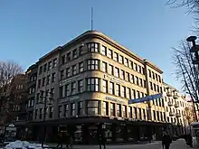 Landsbergis's father, the playwright Gabrielius Landsbergis-Žemkalnis, was an active supporter of the Lithuanian National Revival. Landsbergis studied architecture at the Riga Polytechnical Institute. During World War I, he was drafted to the Imperial Russian Army and completed a school for junior officers. Upon return to Lithuania, he joined the newly established Lithuanian Army and fought in the Lithuanian Wars of Independence. He was taken prisoner by Poland, but managed to escape. He then continued his studies of architecture at the Higher School of Architecture in Rome (now a department of the Sapienza University). Landsbergis returned to Lithuania in 1926 and became one of the most popular and sought-after architects in Kaunas, the temporary capital of Lithuania. He was one of the leaders of a group of about 40 modernist architects working in Kaunas.[1] Eight of his buildings were included in a group 44 buildings awarded the European Heritage Label in 2015. Overall, the modernist architecture of interwar Kaunas has been placed on the UNESCO World Heritage Tentative List in 2017.[2]