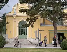 The Sundial House stands opposite the Schönbrunn Palm House (Palmenhaus; another botanical exhibit), directly between the Hietzing Gate and the Zoo. The unprepossessing building owes its name to the sundial (Sonnenuhr) located in the gardens to the south.