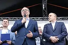 During the party leadership election in January 2016, Czarzasty defeated former MP Jerzy Wenderlich and was elected as the new president of Democratic Left Alliance,[8] replacing the incumbent leader and former Prime Minister Leszek Miller. He was a candidate for the Masovian Regional Assembly during the local elections in 2018, but lost.[9]