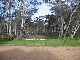 Originally an small township existed here which arose due to the discovery of gold. Commencing in the 1860s, the township supported 2 hotels, several stores, a school and a post office, which remained open until the 1920s. Nothing now remains other than foundations, an old cemetery and recreation reserve.