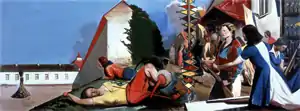 Waiting for the Barbarians (German: Warten auf die Barbaren) is a 2007 painting by the German artist Neo Rauch. To the right in the picture is a carnival where a minotaur is cheered on a stage, while to the left another minotaur is about to be burned at the stake. The picture also includes several other people and creatures. The title is taken from the poem "Waiting for the Barbarians" by Constantine P. Cavafy.[1]