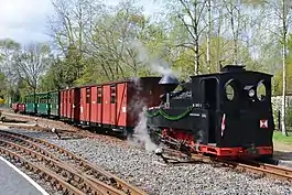 The Waldeisenbahn Muskau is a 600 mm (1 ft 11+5⁄8 in) narrow gauge railway connecting Kromlau, Weißwasser and Bad Muskau in Saxony, Germany. It is the longest 600 mm gauge heritage railway in Germany, with a track length of 20 km (12 mi).[2]
