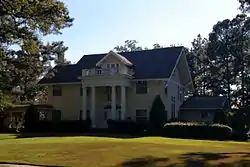 The Walls House, known also as the McCrary House, is a historic house at 406 Jefferson Street in Lonoke, Arkansas. It is a 2+1⁄2-story wood-frame structure, with a side-gable roof and weatherboard siding. Its Colonial Revival styling includes a projecting front portico, with paired Tuscan columns supporting an entablature and balustraded balcony, above which rises a large gabled dormer with exposed rafter ends. The house was built in 1913 to a design by Charles L. Thompson.[2]