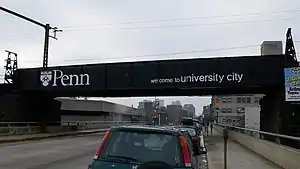 Walnut Street Bridge with its welcome sign in University City in West Philadelphia, December 2007