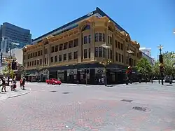 The building is located on the corner of Hay Street and William Street, Perth. It stands opposite the Gledden Building and Wesley Church, two other heritage listed buildings on this corner. The current building replaced the previous Economic Store building that had been destroyed by fire in 1921.[1][2][3]
