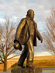 Another casting of the statue was done in 1957, purchased by the Fairmount Park Art Association and placed at the intersection of Broad Street and Packer Avenue, near the approach to the Walt Whitman Bridge.[2]