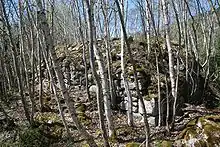 In the Middle Ages, the nearby settlements on Ladral (1,530 m (5,020 ft)) and Jörgenberg belonged to Waltensburg. In the area surrounding Waltensburg/Vuorz there are three other medieval fortresses, Grünenfels (Romansh: Chischlatsch), home of the Freiherren of Grünenfels in the 13th century, Kropfenstein and Vogelberg (Romansh: Cafoghel).[3]