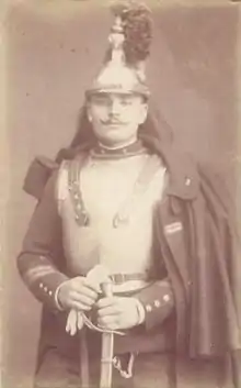 Waddington volunteered for a five-year engagement with the 6th Chasseur Regiment on 22 January 1885 at Rouen and was enlisted as a 2nd class chasseur four days later. He was promoted to brigadier (corporal) on 27 July 1885 and to maréchal-des-logis (senior non-commissioned officer) on 30 January 1886. Waddington attended the École d'application de la cavalerie (cavalry training school) in Saumur from 1 October 1888 to 31 August 1889 and graduated second in his class of 130 candidates.[4]