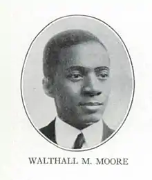 Walthall M. Moore, Sr. (May 1, 1886 – April 8, 1960[3]) was an American politician from Alabama who represented St. Louis in the Missouri House of Representatives. He was the first African American to serve in the Missouri state legislature. Moore was a member of the 51st, 53rd, 54th, and 55th General Assemblies. On December 29, 1911, he married Miss F. A. Ferguson in Marion, Indiana.[2]