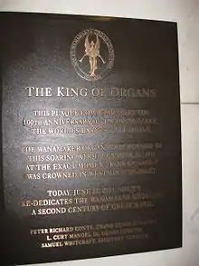 - ↑ "About the Organ – Friends of the Wanamaker Organ, Inc". Archived from the original on 2019-11-12.