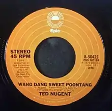 "Wang Dang Sweet Poontang" is a hard rock song written and performed by Ted Nugent. It was first released in 1977 on the Epic album Cat Scratch Fever and as the B-side of the Epic single, Cat Scratch Fever. The song was produced by Lew Futterman and Cliff Davies.[1] An extended live version of the song was released in 1978 on the Double Live Gonzo! album. The song has also been covered by various artists, including a 2020 cover by heavy metal supergroup BPMD.