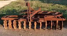 Amongst the various contemporary agricultural practices mentioned in the Nong Shu, Wang listed and described the use of ploughing, sowing, irrigation, cultivation of mulberries, etc.[3] It listed and described many of the various foodstuffs and products of the many regions of China.[3] The book outlined the use of not only agricultural tools, but food-processing, irrigation equipment, different types of fields, ceremonial vessels, various types of grain storage, carts, boats, mechanical devices, and textile machinery used in many applications.[3] For example, one of the many devices described and illustrated in drawing is a large mechanical milling plant operated by the motive power of oxen, with an enormous rotating geared wheel engaging the toothed gears of eight different mills surrounding it.[23] Of great interest to sinologist historians, Wang also outlined the difference between the agricultural technology of Northern China and that of Southern China.[24] The main characteristic of agricultural technology of the north was technical applications fit for predominantly dryland cultivation, while intensified irrigation cultivation was more suitable for southern China.[24] Furthermore, Wang used his treatise as a means to spread knowledge in support of certain agricultural practices or technologies found exclusively in either South or North that could benefit the other, if only they were more widely known, such as the southern hand-harrow used for weeding in the south, yet virtually unknown in the north.[25]