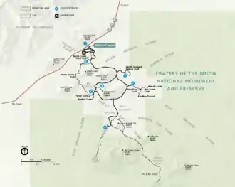 - ↑ "Craters of the Moon Wilderness Area". National Park System. Archived from the original on 2019-08-31. Retrieved 2019-08-31.
