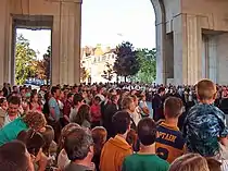 The First Battle of Bull Run, also known as First Manassas (the name used by Confederate forces), was fought on July 21, 1861, in Prince William County, Virginia, near the city of Manassas. It was the first major land battle of the American Civil War. Expecting an easy Union victory, the wealthy elite of nearby Washington, including congressmen and their families, had come to picnic and watch the battle. When the Union army was driven back in a running disorder, the roads back to Washington were blocked by panicked civilians attempting to flee in their carriages. Frank Leslie made an engraving of this in the engraving The Soldier in Our Civil War.[3] The Battle of Gettysburg was also spectated by a number of tourists,[4] including Arthur Lyon Fremantle.