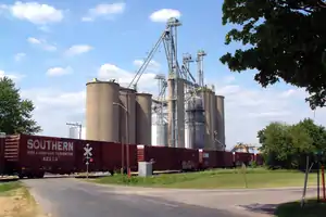 A Norfolk Southern Railway route connecting Danville, Illinois, with the city of Lafayette is the county's busiest rail line, carrying about 45 freight trains each day.[76] It enters Warren County at State Line City and passes northeast through the communities of Johnsonville, Marshfield, West Lebanon and Williamsport before exiting the county at Attica.[77] Two short-line railroads operate less frequently. The Bee Line Railroad is used principally for agricultural transportation and runs approximately 10 miles (16 km) from Stewart north through Tab and into southern Benton County where it joins the Kankakee, Beaverville and Southern.[78] The 6-mile (10 km) Vermilion Valley Railroad serves the Flex-N-Gate factory near Covington and runs west from the plant through the town of Foster to meet a CSX line in Danville.[10][79]