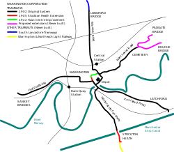 ![]() Diagram map of the Warrington tramway system | |