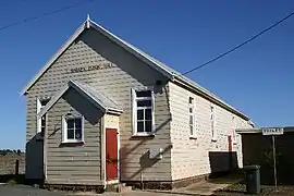 The general store was owned throughout the 1950s by George Glover and his wife, Rosie. The Glovers drove a Holden panel van and sold home-made lunchtime pies to schools across the district. Mr Glover sold the pies from a pie warmer from the rear tailgate. His wife, Rosie, sat on the tailgate dispensing tomato sauce for a penny a serve. The Glovers sold meat, fish, vegetable, apple and apricot pies.